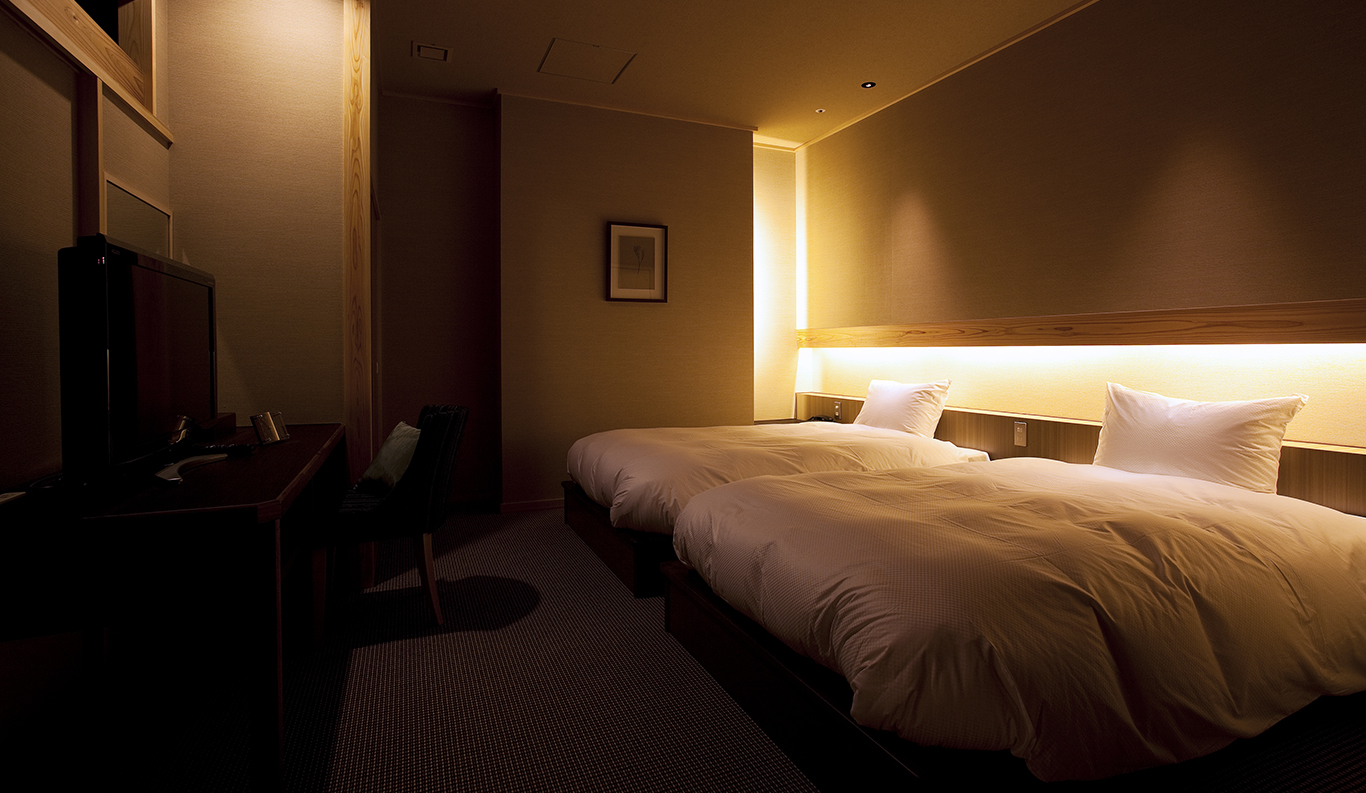 2-4 154 sqm Private Open-air Bath Bed This is a more compact midsize room, still spacious and elegant in true Villa Rakuen style. Twin beds invite restful ease, as does the rocky rotemburo on the deck. ¥ 47,450~ per person (based on double occupancy) *Room rates at the Ryokan vary depending on the season and booking status. Therefore, we provide an estimated amount as a reference. REQUEST THIS ROOM -