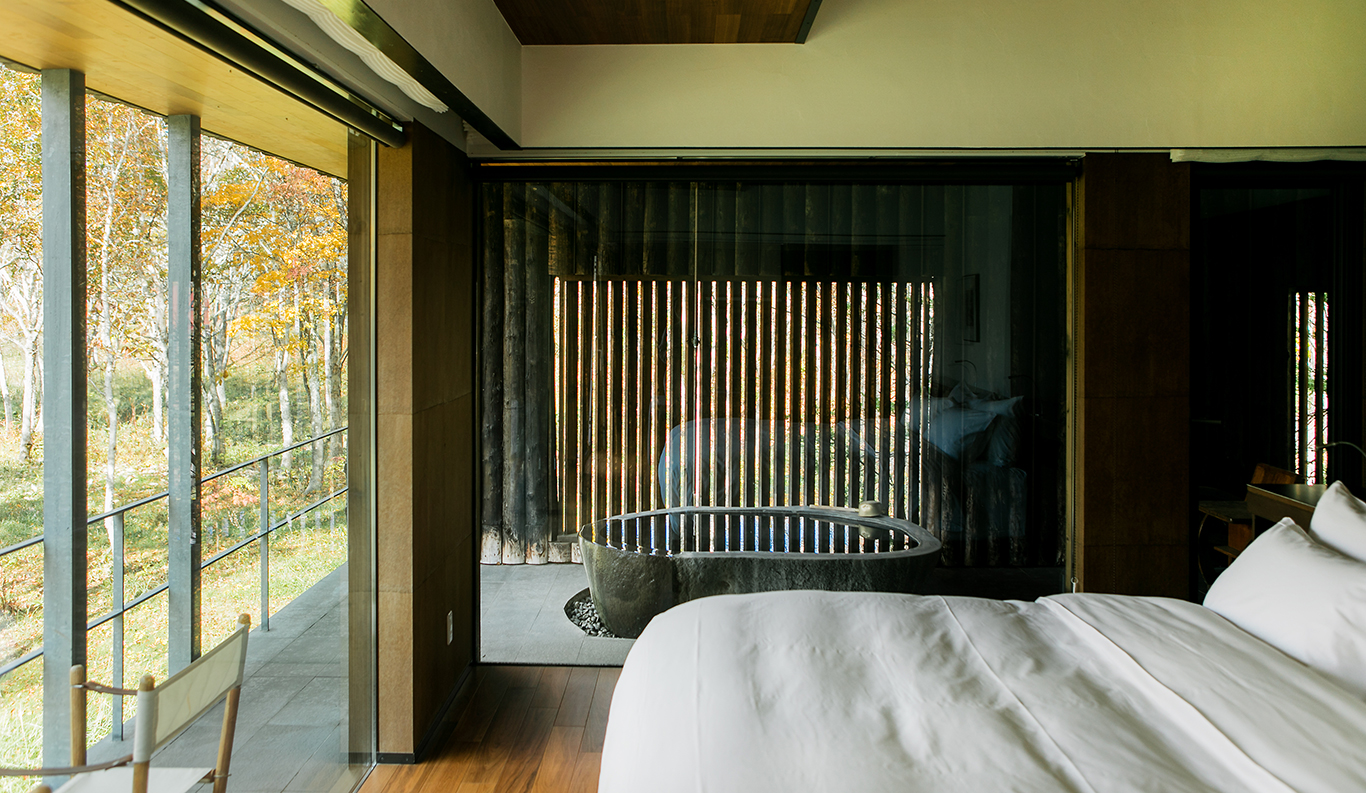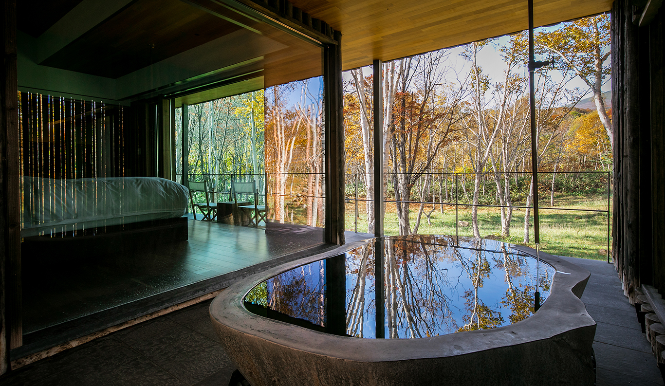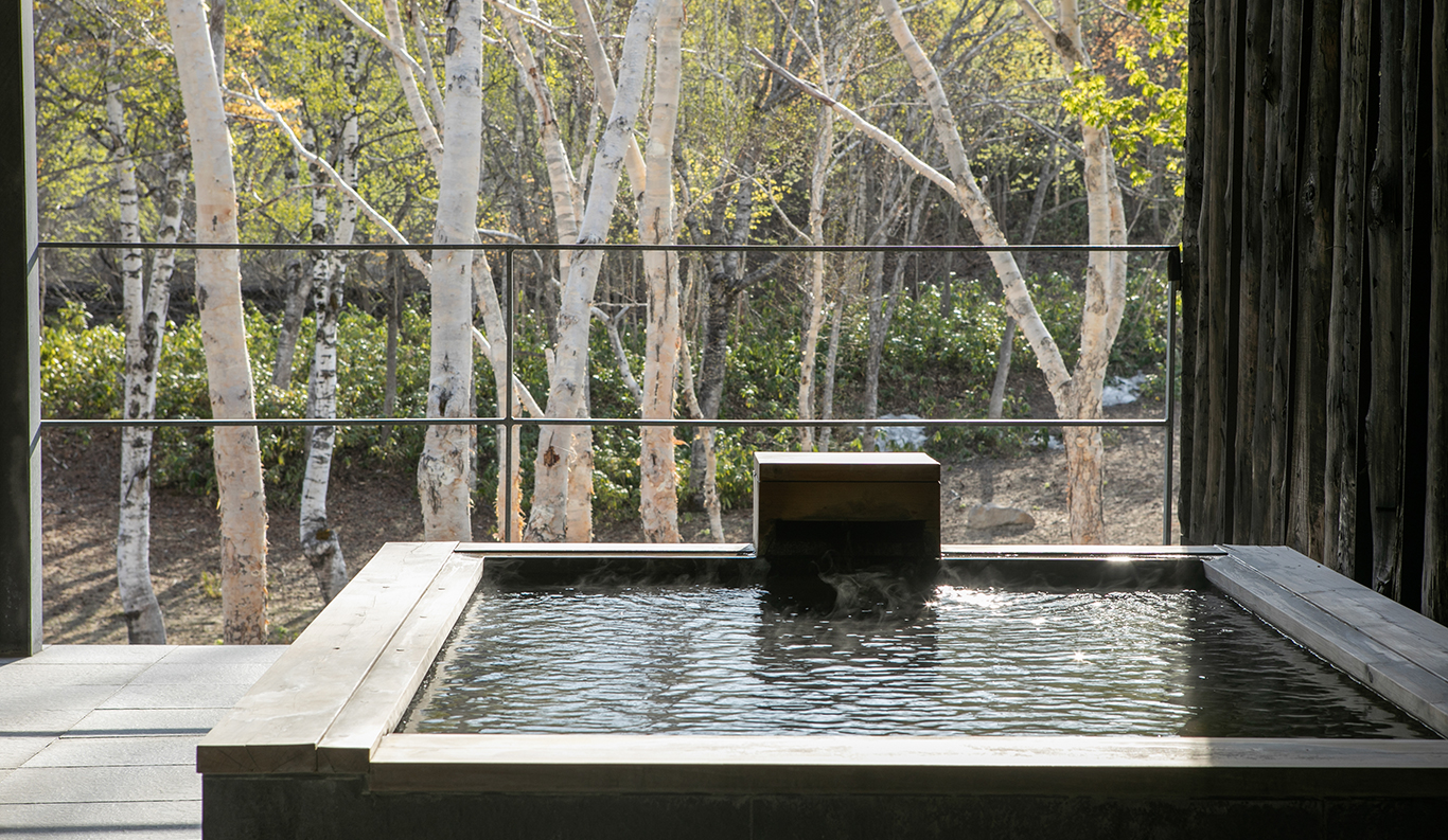 Hot Spring At Zaborin, each villa boasts a private indoor and outdoor onsen known as the ‘rotenburo’. Sourced from almost a kilometre below ground, the water’s natural heat keeps the baths at the perfect bathing temperature. This rarity is known as “gensen kakenagashi’”(over-flowing natural hot spring) and is the most revered of all onsen types. Each villa is different: some onsens are made of the fragrant hinoki wood (native Japanese cypress species), others from an impressive single piece stone.