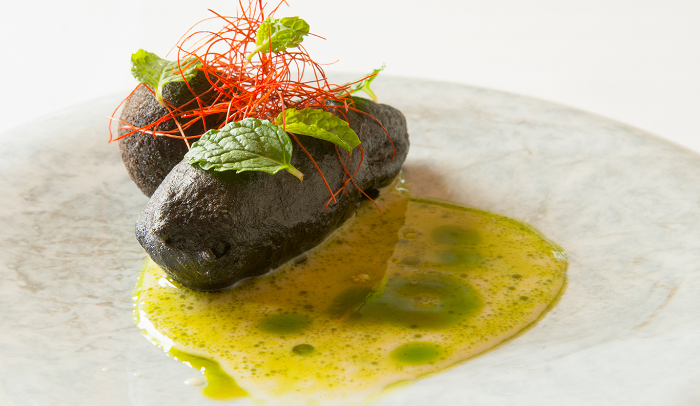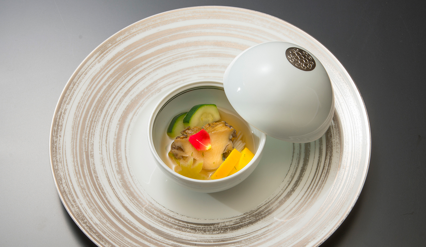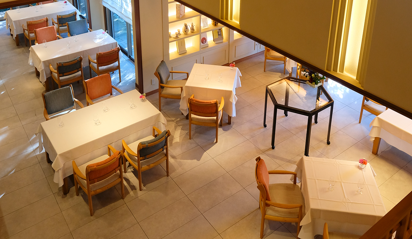 In a sunny space flowing seamlessly from heigh-ceilinged dining room to wide patio to grassy lawn, Chef Yamamoto explores the intersection of French cuisine and local fare, looking to craft meals with a deep connection to the land and sea that produced them. Using wild game like deer, pheasant, and boar, as well as the area’s famed seafood, Yamamoto finds commonality with the traditions and techniques of the auberge to make only-here, only-now courses of Japanese-inflected modern French. Wine pairings are naturally available, but the chef also nods to Shizuoka’s reputation as Japan’s foremost tea producer to offer custom blended tea pairings, either as standard brews or in cocktails. Yamamomo is the venue for the Western-style breakfast and is also open to the public for lunch.